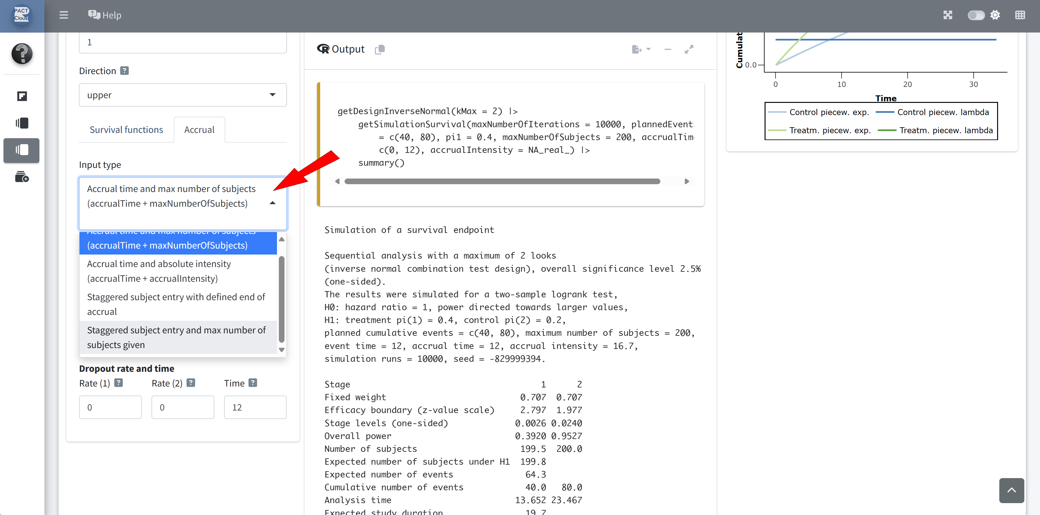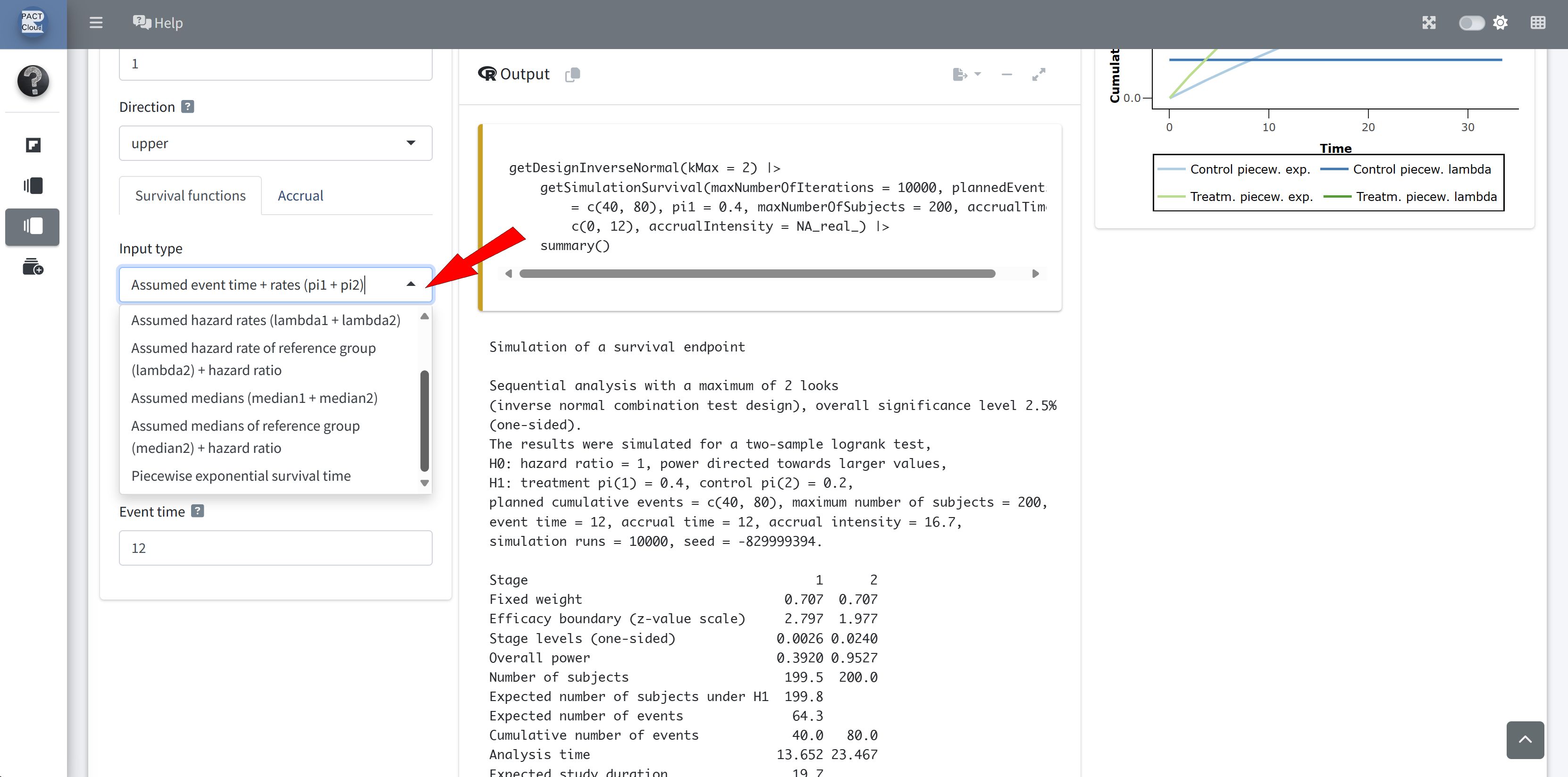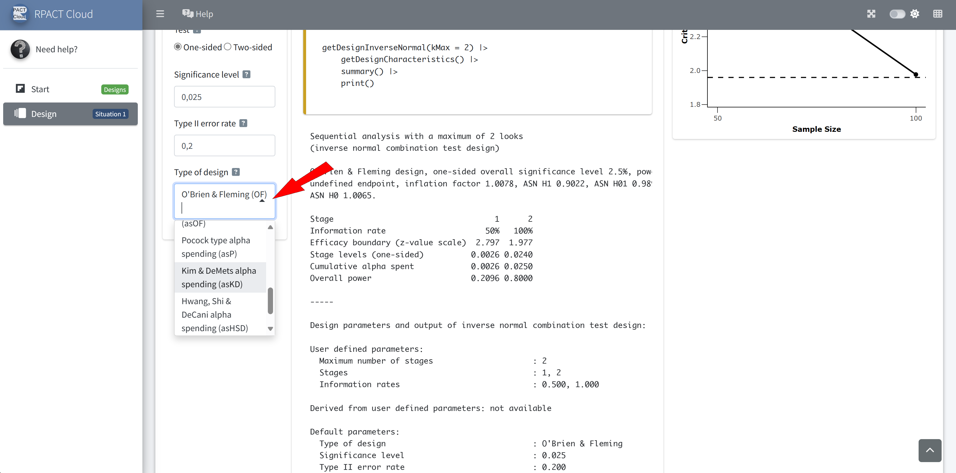 rpact for one-arm survival designs as well as binary designs with exact tests. We are aware of these limitations and would be happy to add them to rpact and RPACT Cloud if there is sufficient interest or a corresponding collaboration project