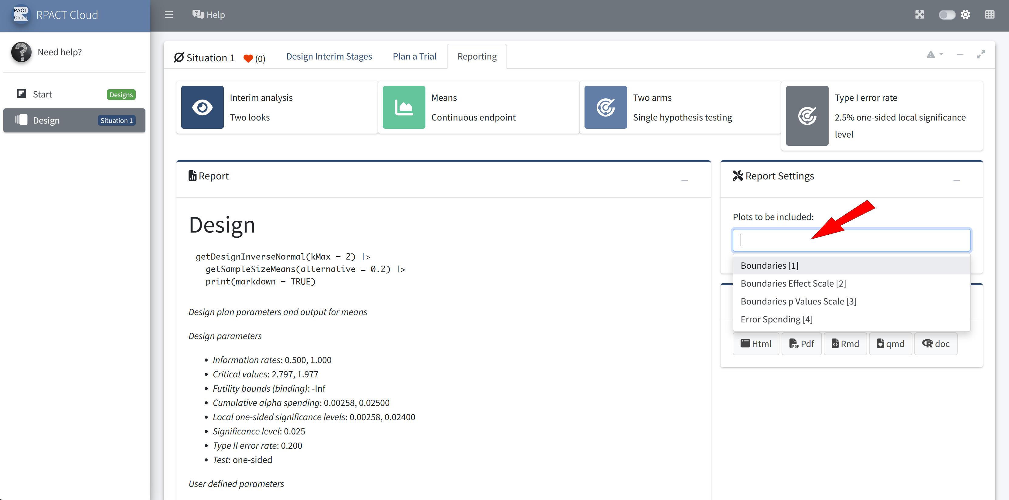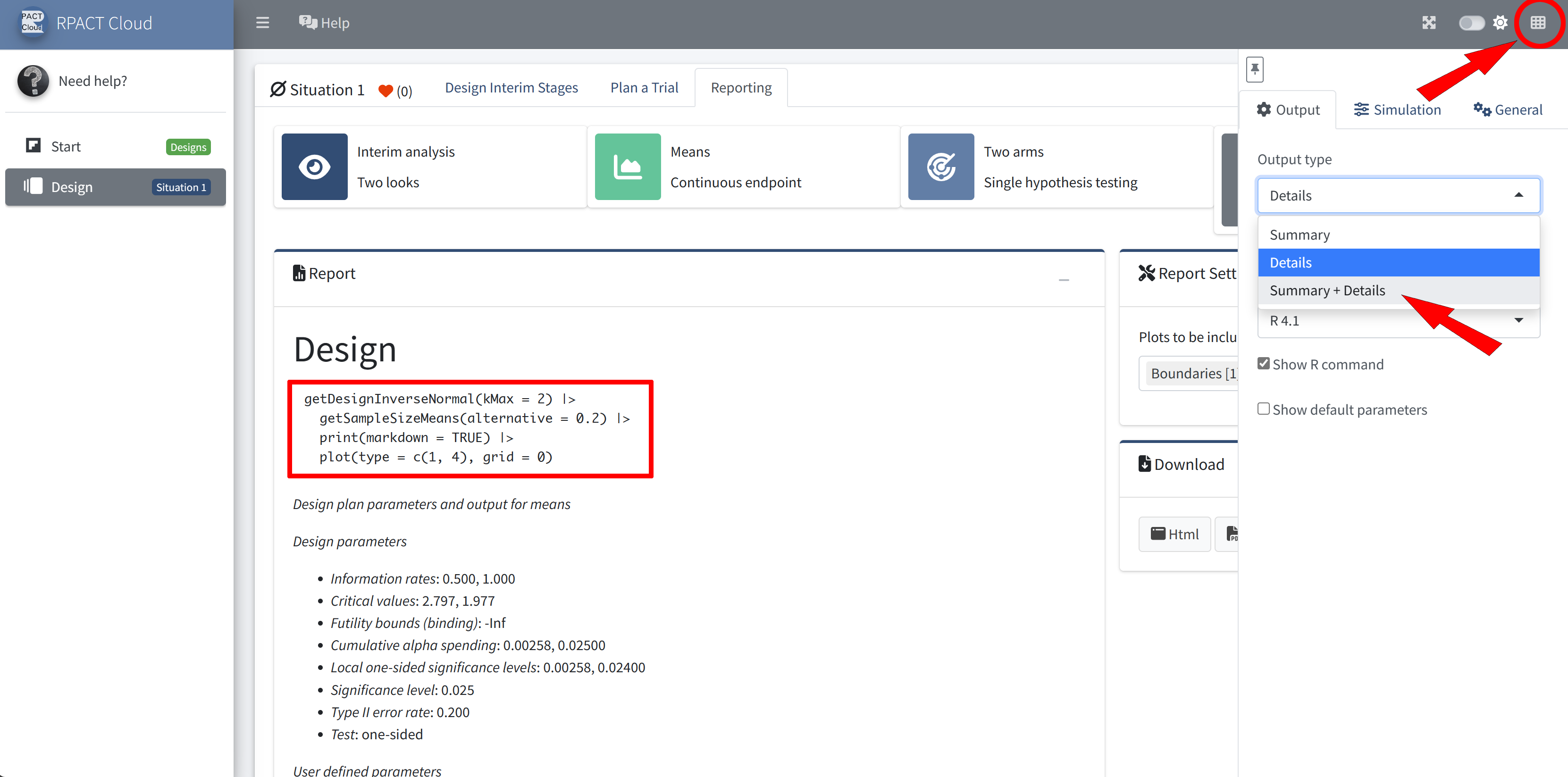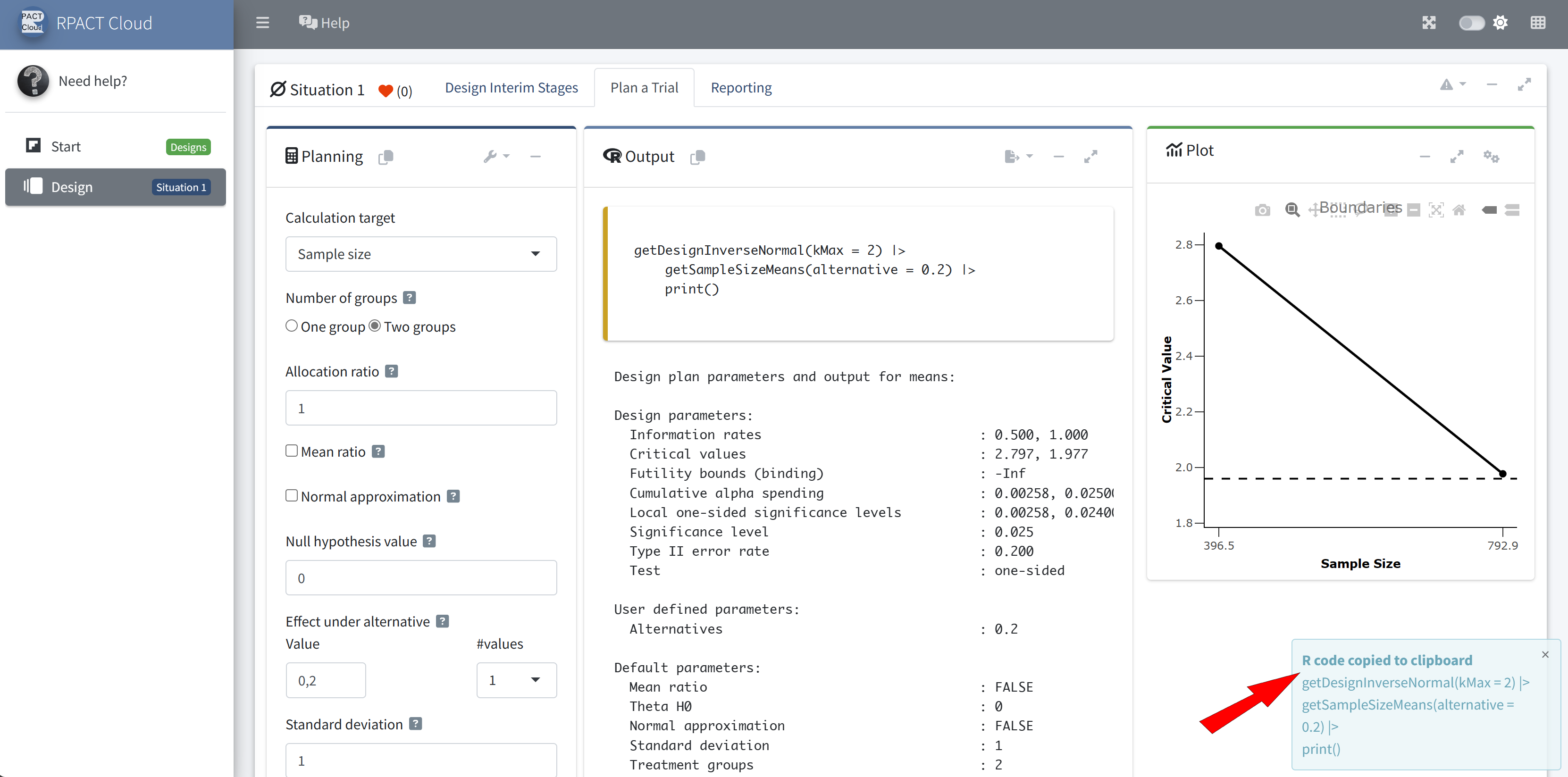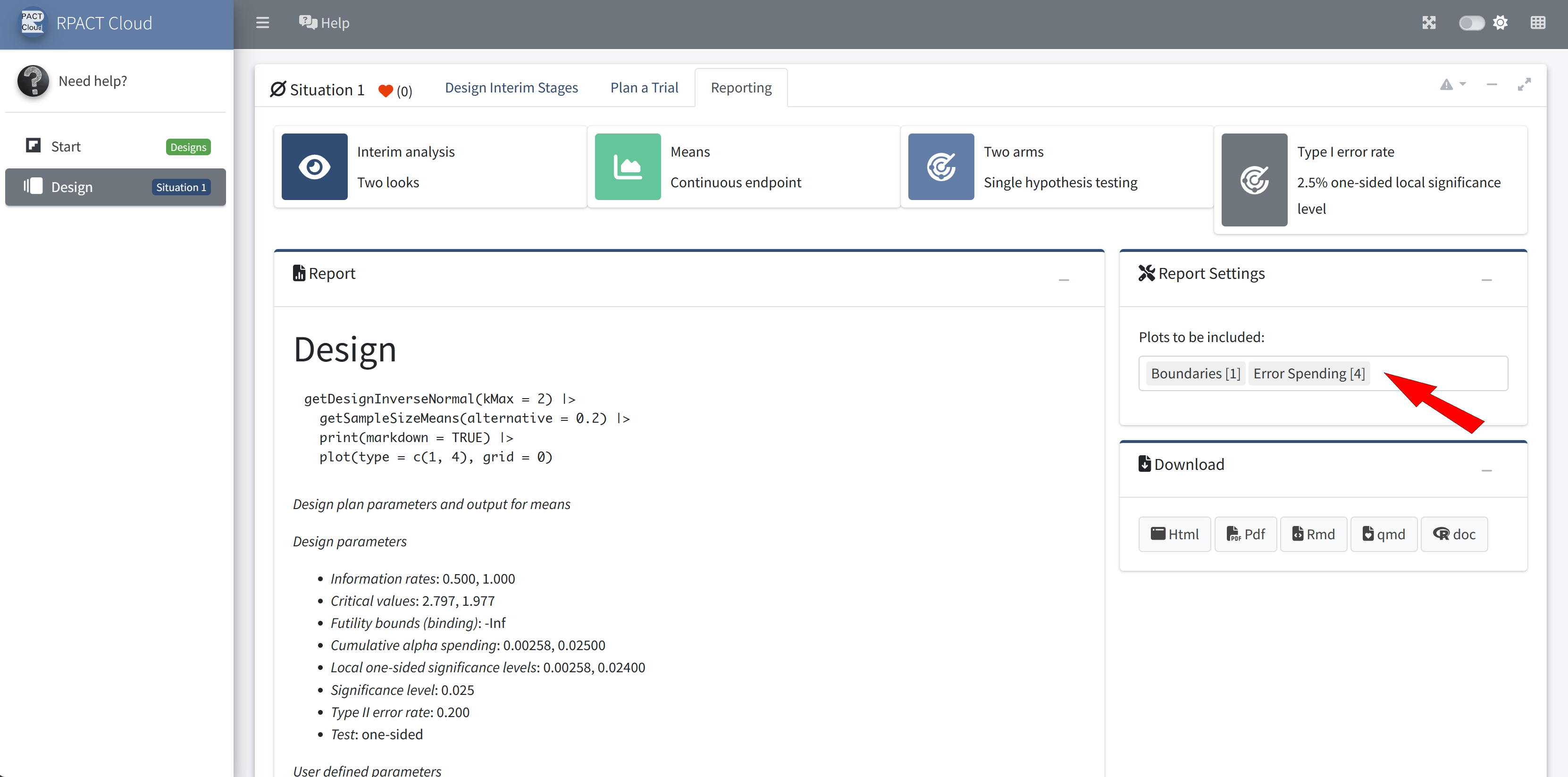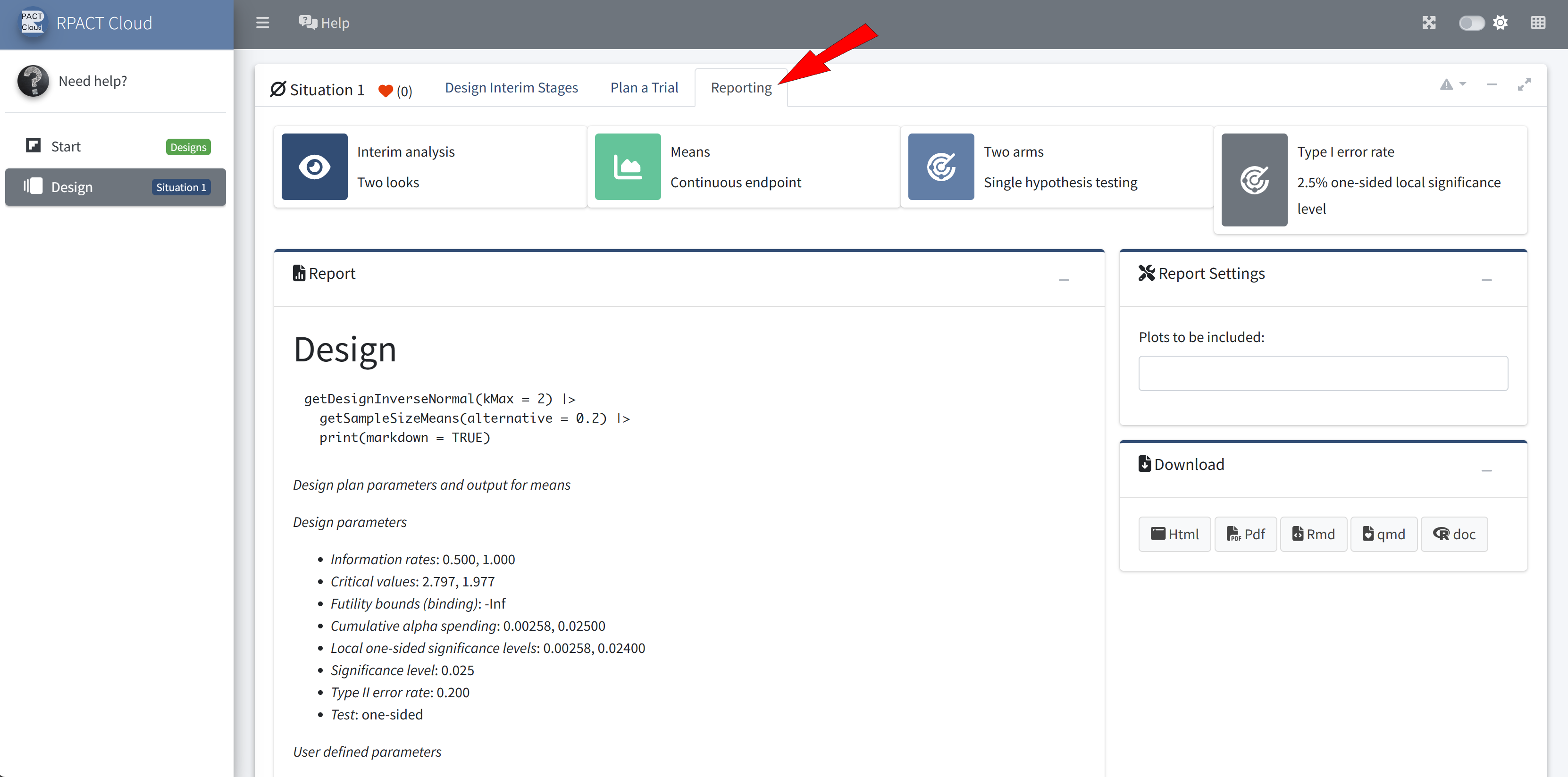 - Code-based: RPACT Cloud produces R code that can be exported as part of reports, and can then be fully transparently version-controlled, reviewed and audited, and can be used for regulatory submission purposes