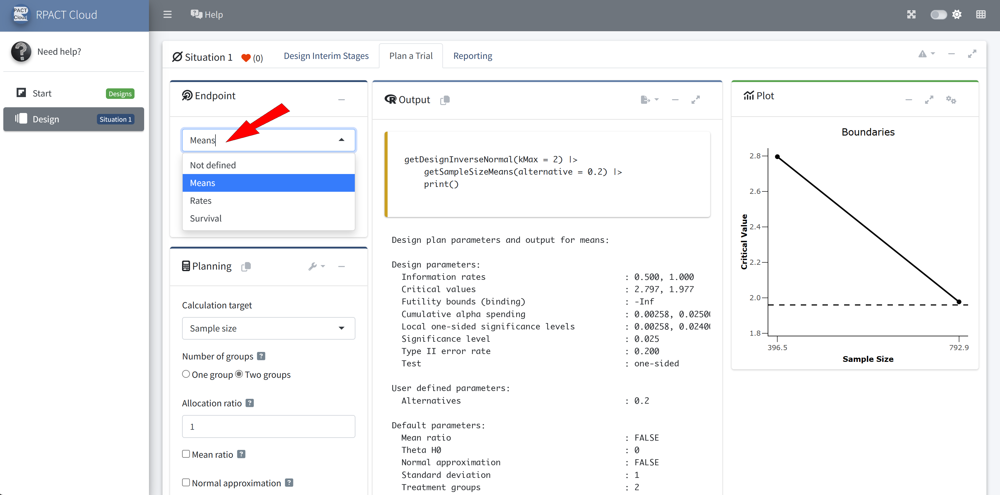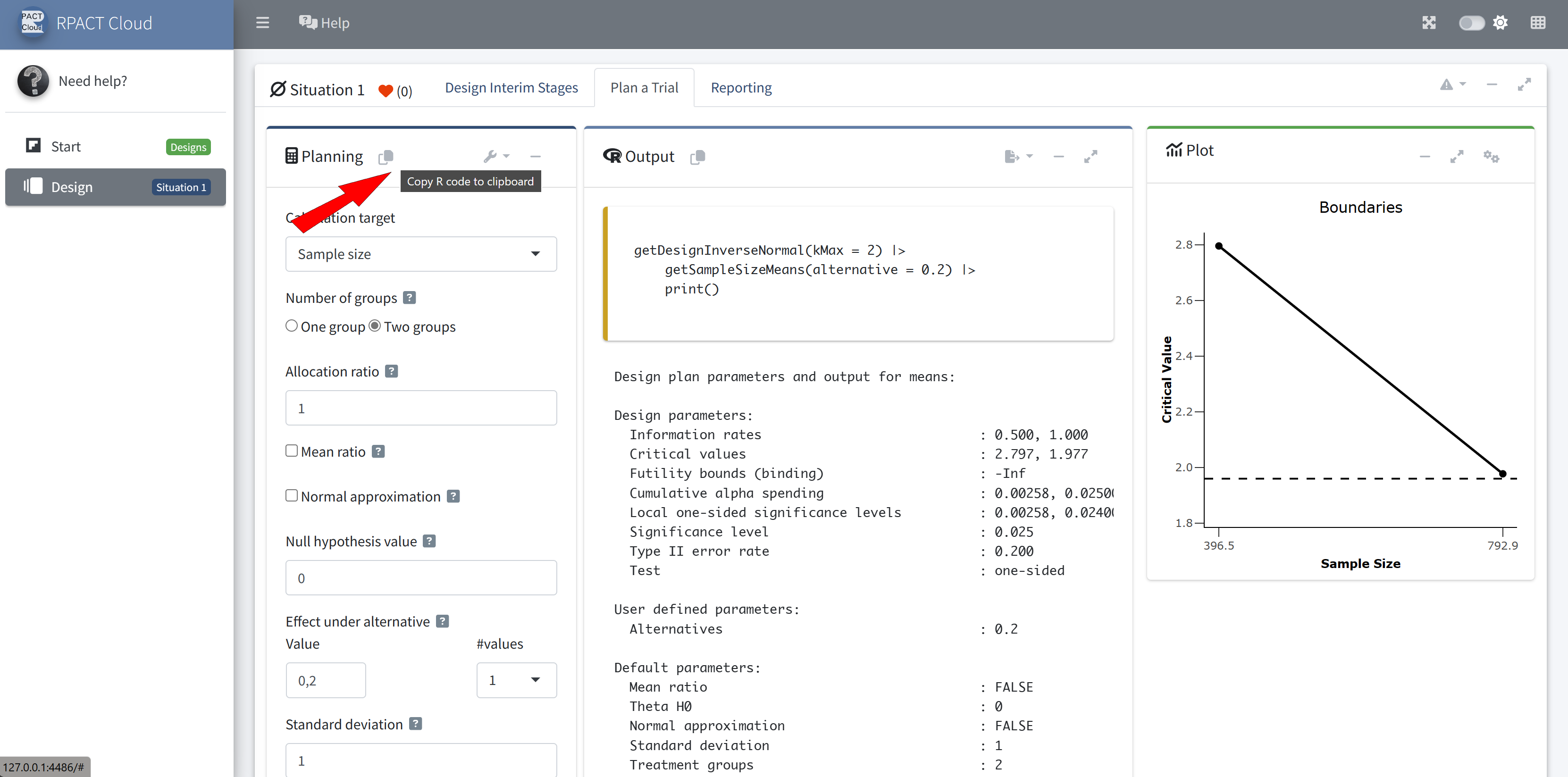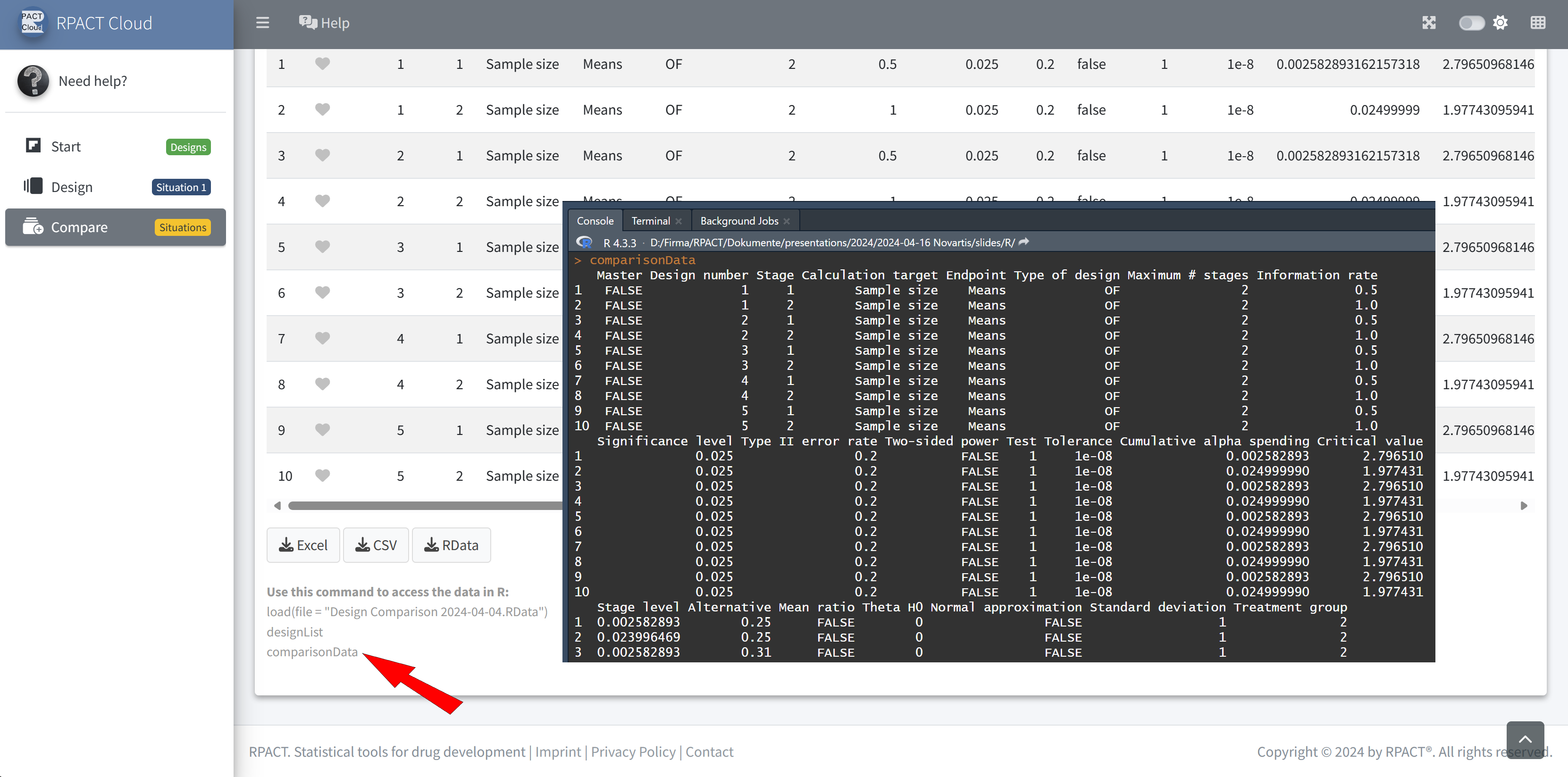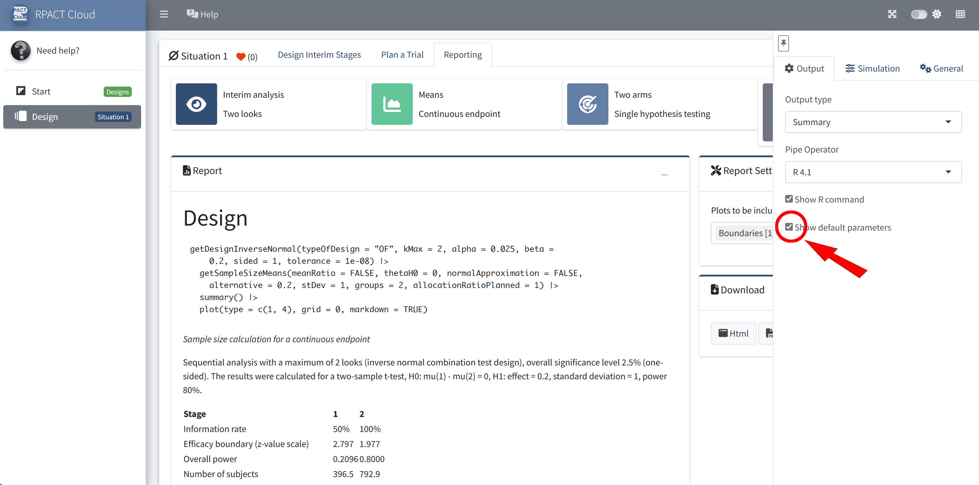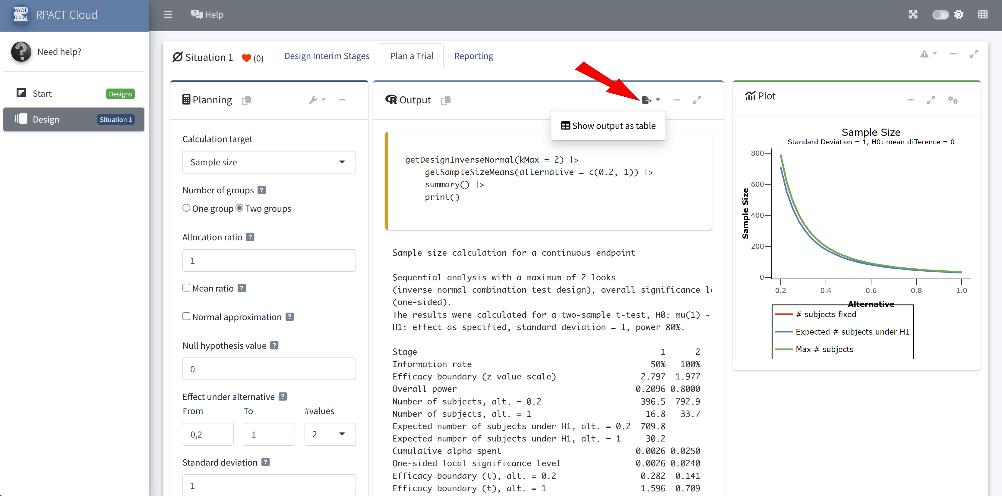 - Code-based: RPACT Cloud produces R code that can be exported as part of reports, and can then be fully transparently version-controlled, reviewed and audited, and can be used for regulatory submission purposes