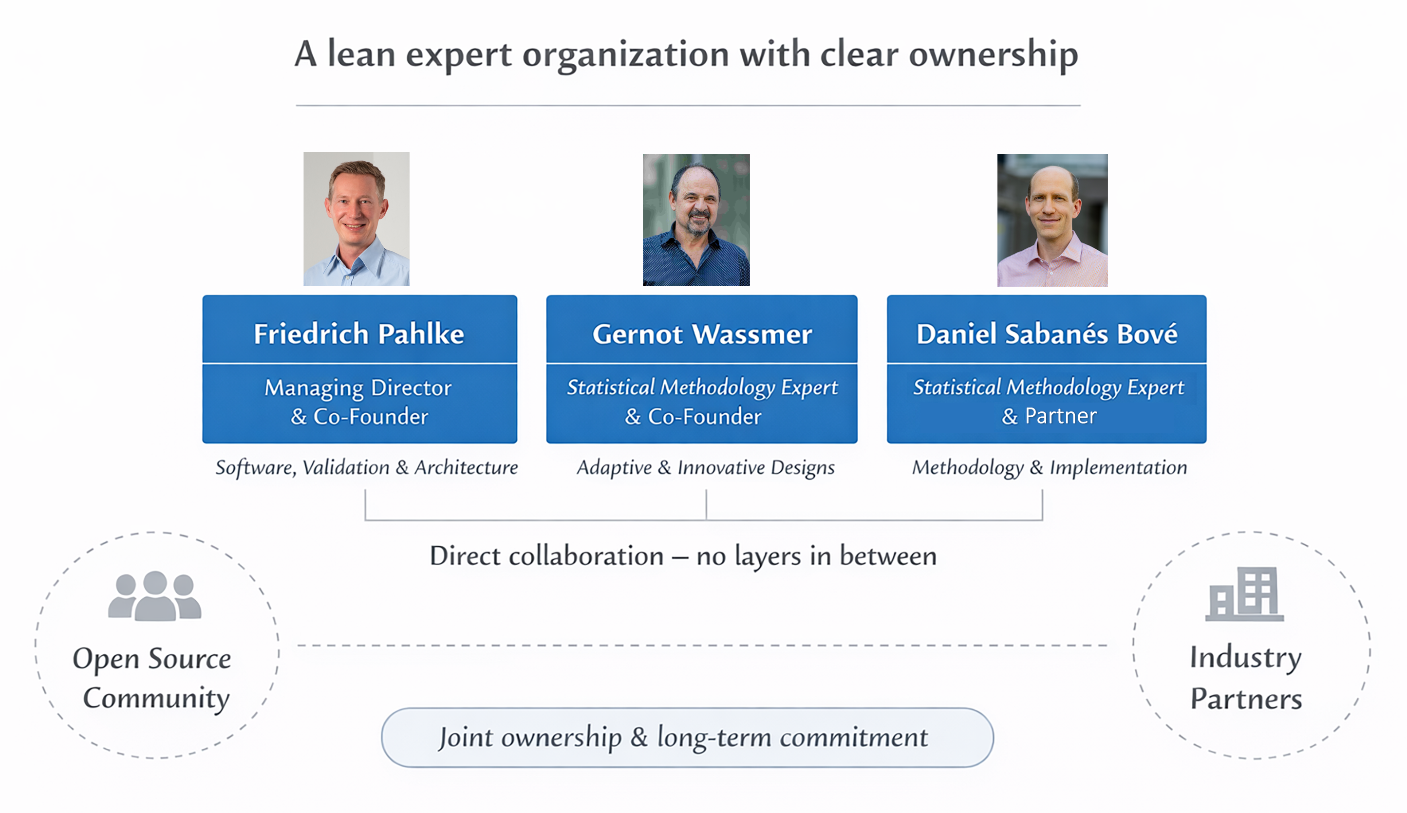 - Lean expert organization with clear ownership and long-term commitment, combining methodology, software, and validation expertise